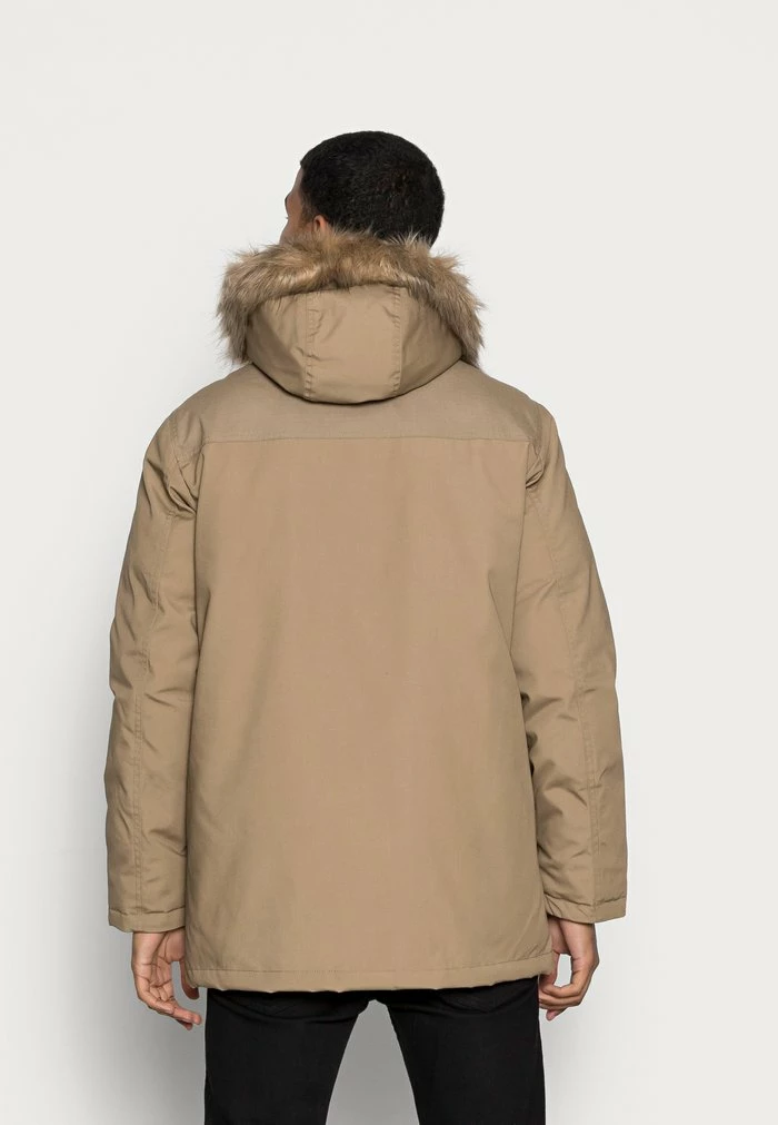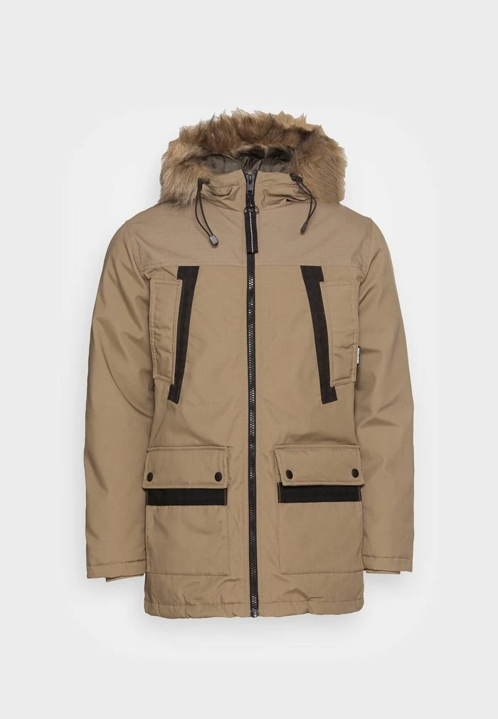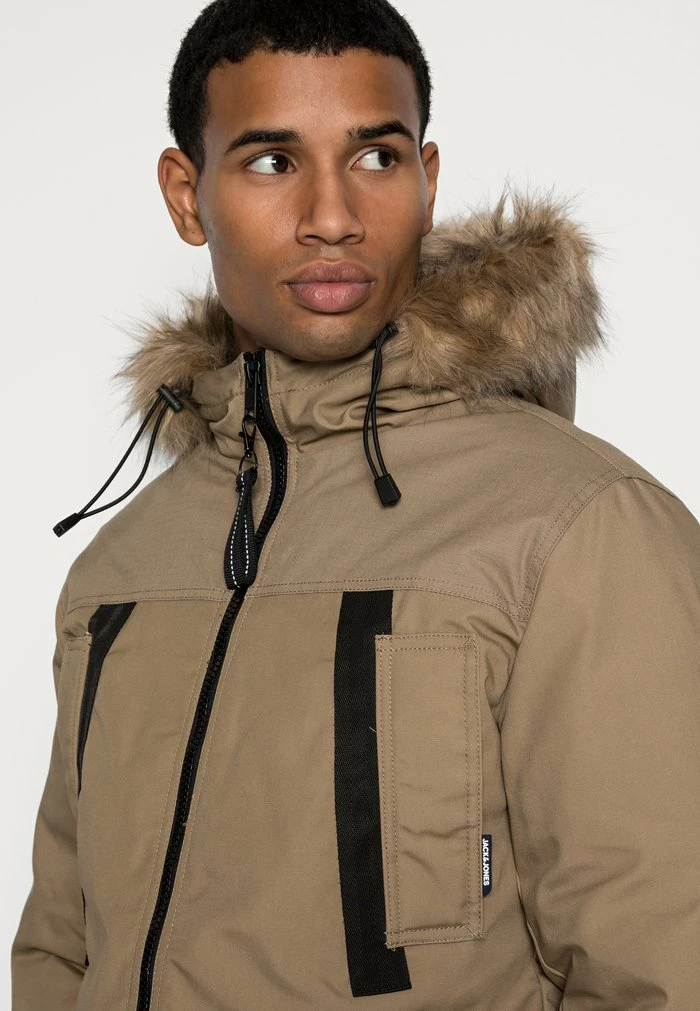 - Hood detail: Drawstring, lined, removable faux fur collar